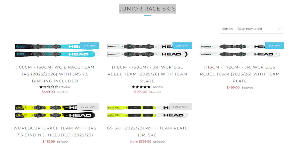 As you grow and learn to ski, you will need different sizes of ski depending on growth spurts, and weight. My recommendations: U10, 50-60lbs = 124cm, 60-80lbs = 131cm, 80-100lbs = 138cm, 100lbs + = 145cm. U12, under 70lbs = 131cm, 70-85lbs = 138/145cm, 85-100lbs = 145/152cm, 100lbs+ = 159/166cm. U14, 70-90lbs = 152cm, 90-110lbs = 159cm, 110-130lbs = 166cm, 130lbs + = 173cm. Suggested bindings for this ski are the Evo 9 and Freeflex 11/14. Please consult with your coach before any purchase as they can best match your equipment to your skiing ability, strengths, and future goals. Enjoy the slopes!